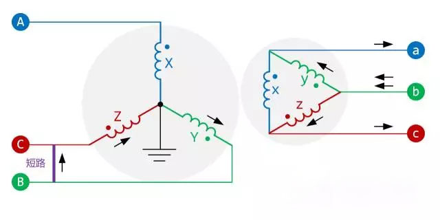 Y側BC短路時,Y側和d側電流如下: