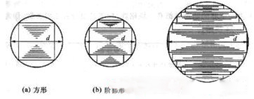 鐵心柱的截面形狀與變壓器的容量有關(guān),單相變壓器及小型三相電力變壓器采用正方形或長方形截面,如圖2—22(a)所示;在大、中型三相電力變壓器中,為了充分利用繞組內(nèi)圓的空間,通常采用階梯形截面,如圖2—22(b)、(c)所示。階梯形的級(jí)數(shù)越多,則變壓器結(jié)構(gòu)越緊湊,但疊裝工藝越復(fù)雜。