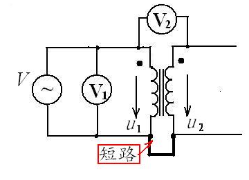 理由:如圖4那樣標(biāo)注時(shí),是“減極性”標(biāo)注。這樣,變壓器兩個(gè)繞組上的電壓就應(yīng)該是同相的。當(dāng)把非極性端短路時(shí),電壓表所測量的就是兩側(cè)電壓之差,即讀數(shù)V2小于讀數(shù)V1 。否則,是加極性。