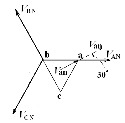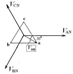但是,問題來了:對于三角形結(jié)線來說,相電壓就是線電壓,那么,究竟采用哪個(gè)電壓作相電壓呢?解決方法是:把表示三角形結(jié)線的等邊三角形相量的頂點(diǎn)a角做一個(gè)平分線,把這個(gè)平分線的相量就當(dāng)作是A相的相電壓。這當(dāng)然是認(rèn)為社定的。