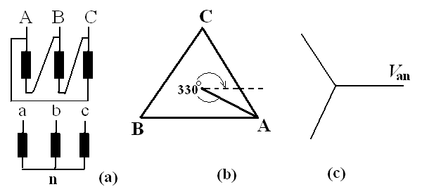 步驟3:按abc的正相順序畫出低壓結(jié)線的三角形相量圖;